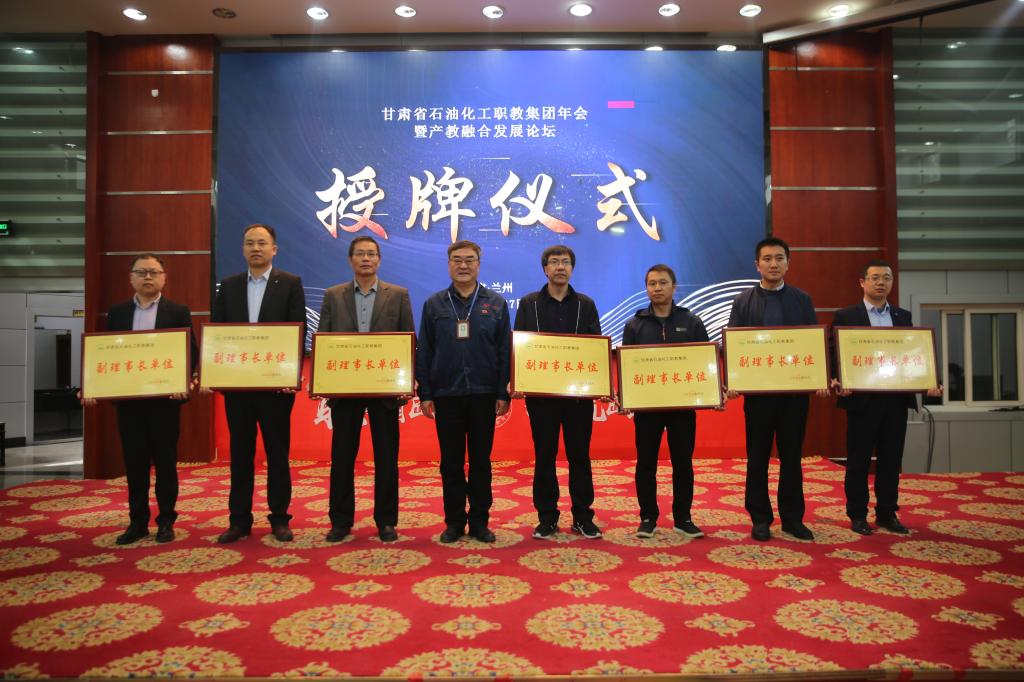 会上,为新加入的理事成员单位颁发了甘肃省石油化工职教集团副理事长单位和理事单位牌匾。