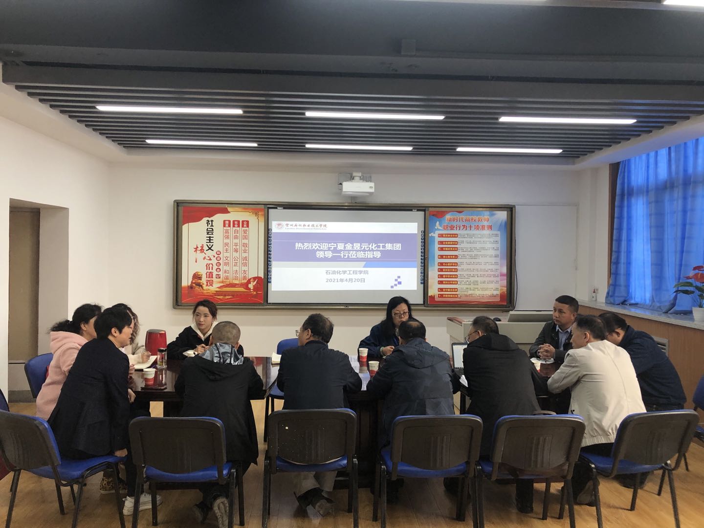 4月20日,宁夏金昱元化工集团有限公司总工程师、杰出校友李永红一行4人来校进行校企合作考察交流。77779193永利院长李薇、工业分析和高分子合成教研室相关教师参加了座谈会。