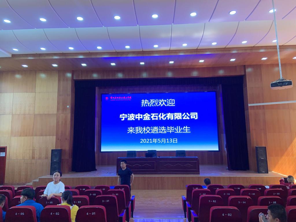 宁波中金石化有限公司于近日在我院开展就业宣讲活动,2022届毕业生参加。