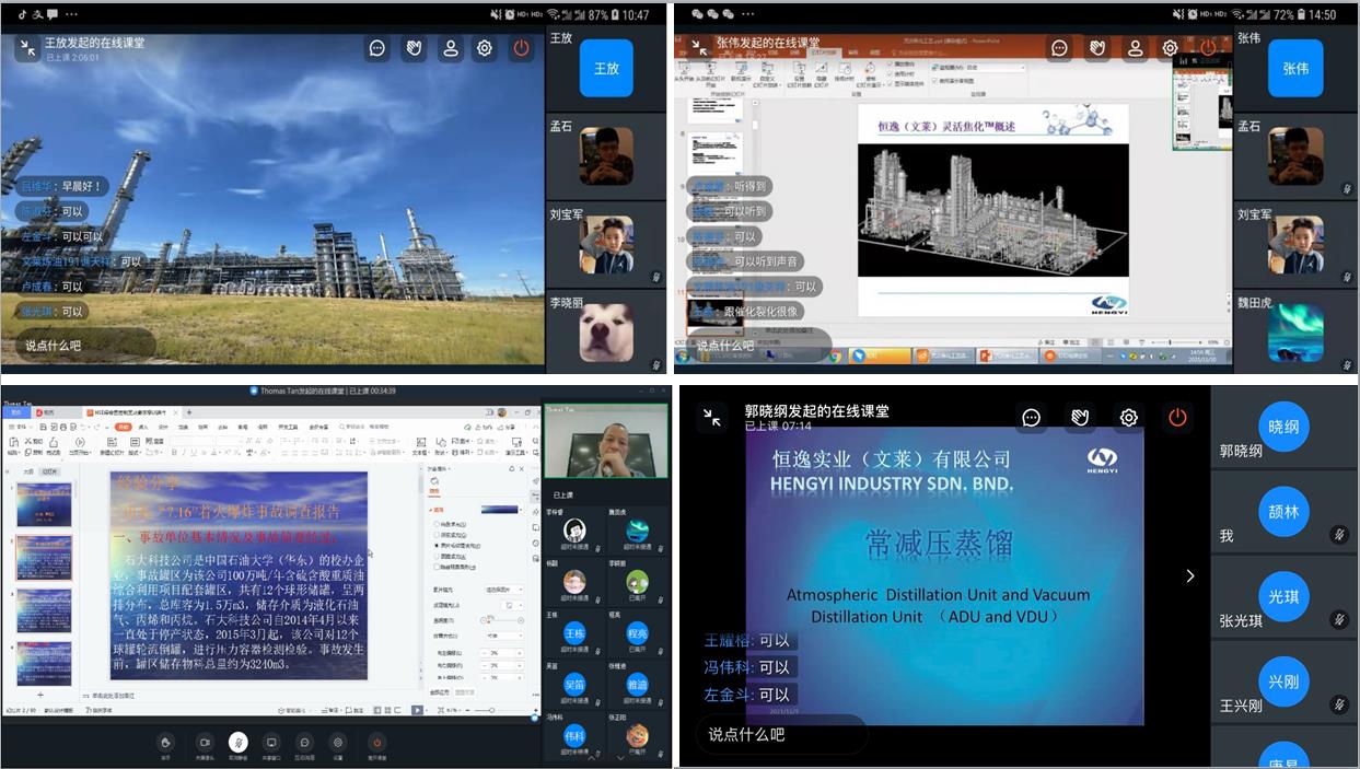 2021年11月8日-12日,77779193永利邀请恒逸实业(文莱)有限公司人力资源部部长赵辅珍、主任工程师谭权忠等8位企业专家,为文莱炼油191学徒制班学生作为期5天的8次线上工程师课堂,教学内容包含企业文化、化工安全、常减压、重整、灵活焦化、加氢裂化及柴油加氢等企业典型生产装置技术知识。