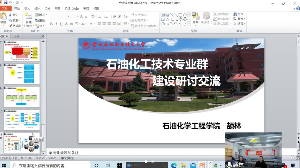 会上,李薇首先介绍了我校发展建设和石油化工技术高水平专业群建设情况,接着郑晓明以《化工分析方法选择与方案设计》为例介绍了我校课程思政的改革与实践情况,随后颉林介绍了我院“双师”结构教师队伍建设和专业群实训基地建设情况。最后,两校与会人员从专业群人才培养方案、课程思政的改革、课程体系构建、“1+X”证书制度试点、专业群师资队伍建设、校企合作、国际合作与交流、毕业生就业等方面进行了交流研讨,并分享了我院专业群建设经验。