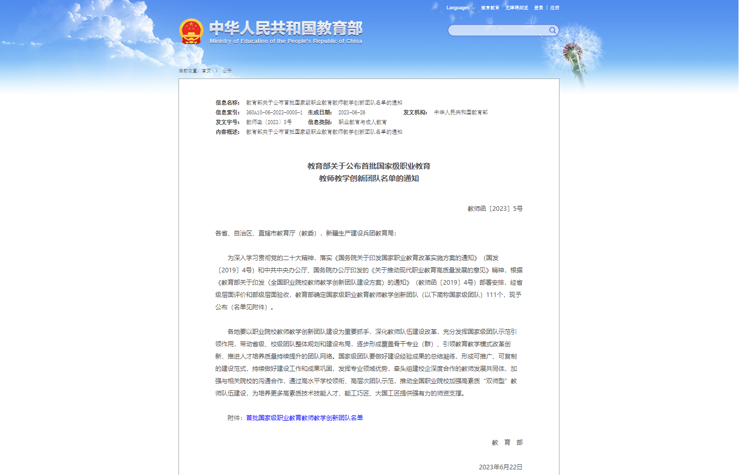 为深入学习贯彻党的二十大精神,落实《国务院关于印发国家职业教育改革实施方案的通知》和《关于推动现代职业教育高质量发展的意见》精神,以职业院校教师教学创新团队建设为重要抓手,深化教师队伍建设改革,推动全国职业院校加强高素质“双师型”教师队伍建设。6月22日,教育部公布首批国家级职业教育教师教学创新团队名单,确定国家级职业教育教师教学创新团队111个,我校石油化工技术教学团队被确定为首批国家级职业教育教师教学创新团队。