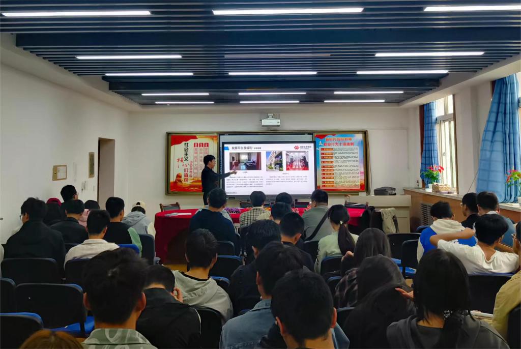 会上企业领导详细介绍了企业概况、发展规划,并就薪资待遇、五险二金、补充医疗、带薪年假及带薪培训等一系列关乎同学们切身利益方面的规章制度进行了重点讲解,与会同学对此表现出极的大兴趣。最后企业领导介绍了招聘所需的条件并与有意向的学生进行了交流。