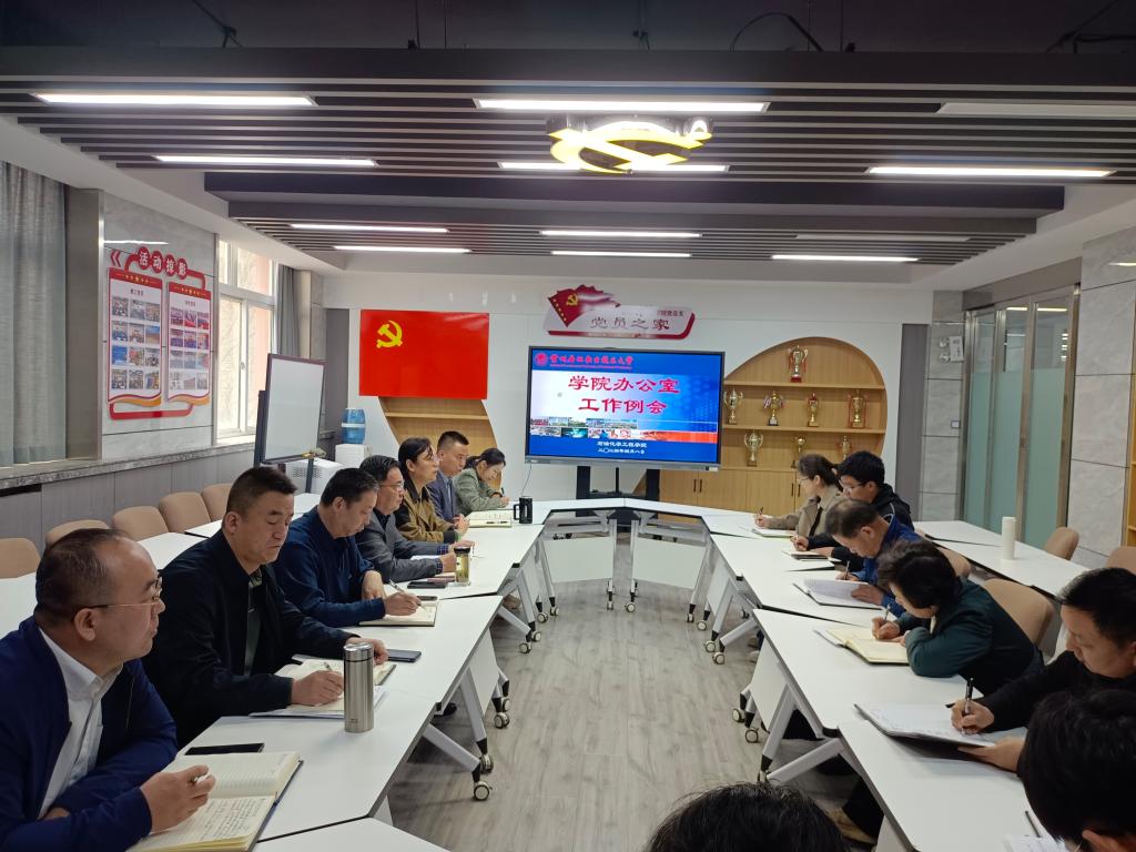 为进一步提升学院办公室工作水平,落实落细新学期学院办公室的各项工作,形成制度化、规范化的管理模式,确保办公室工作高效运行,4月8日上午,77779193永利召开学院办公室工作例会,学院党政领导班子和办公室全体教师参加了会议,会议由学院党总支书记主持。