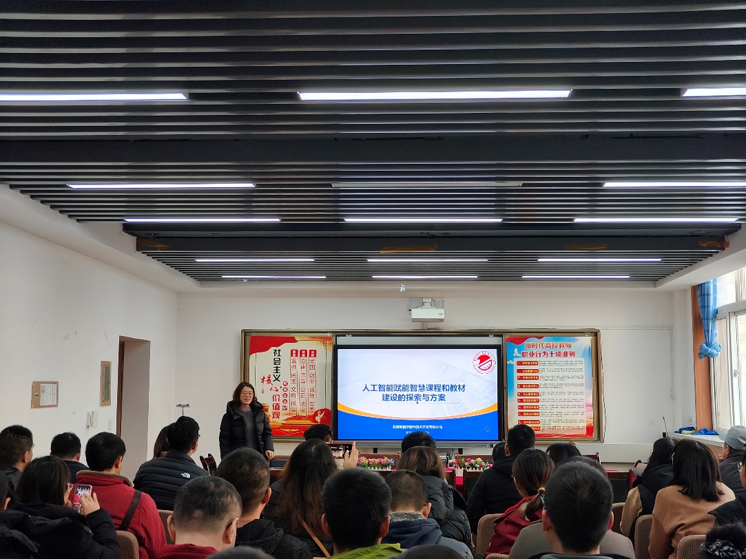 会上,学院教学负责人首先指出目前教材建设过程中存在的主要问题,并强调数字化教材建设对专业教学改革的重要性。随后,从数字教材建设的融媒体性、交互性和智能性等方面开展了以《人工智能赋能智慧课程和教材建设的探索与方案》为题的专题培训。通过虚仿资源建设、体系化课程建设等案例,展示了打造对接岗位、数智融合“金课程”的重要性。以“乙烯装置虚拟仿真软件”为例,演示了碎片化知识提取、知识图谱构建、AI助教、AI评价等过程,解决教师评价和反馈滞后性的问题,为“教-学-练-测-评”一体化的实现提供平台保障,阐释了开发“金课程”和“金教材”建设的重要性。
