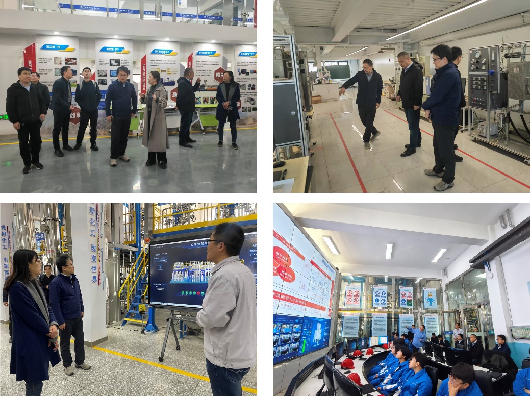 座谈会前,调研组一行实地考察了聚丙烯及材料工程实训基地、乙烯智能化仿真工厂等实训基地。重点观摩了乙烯智能化仿真工厂,深入交流APC控制系统、MES控制系统、智能化巡检系统、智能化危险作业操作等系统的课程教学过程,对人工智能如何具体应用于课程建设和教学实践进行了积极互动和交流。